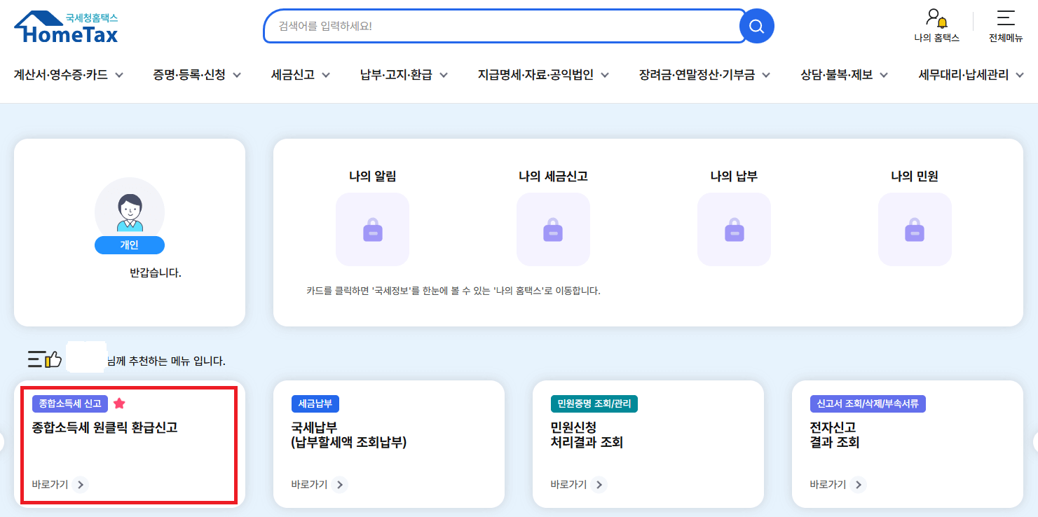 국세청 원클릭 환급 방법