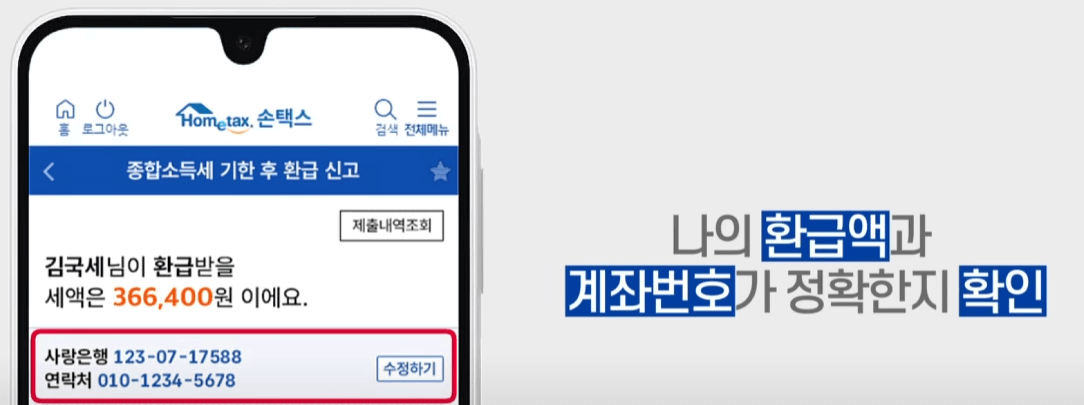 - 나의 환급액과 계좌정보 확인 (정확한지 꼭 확인!)